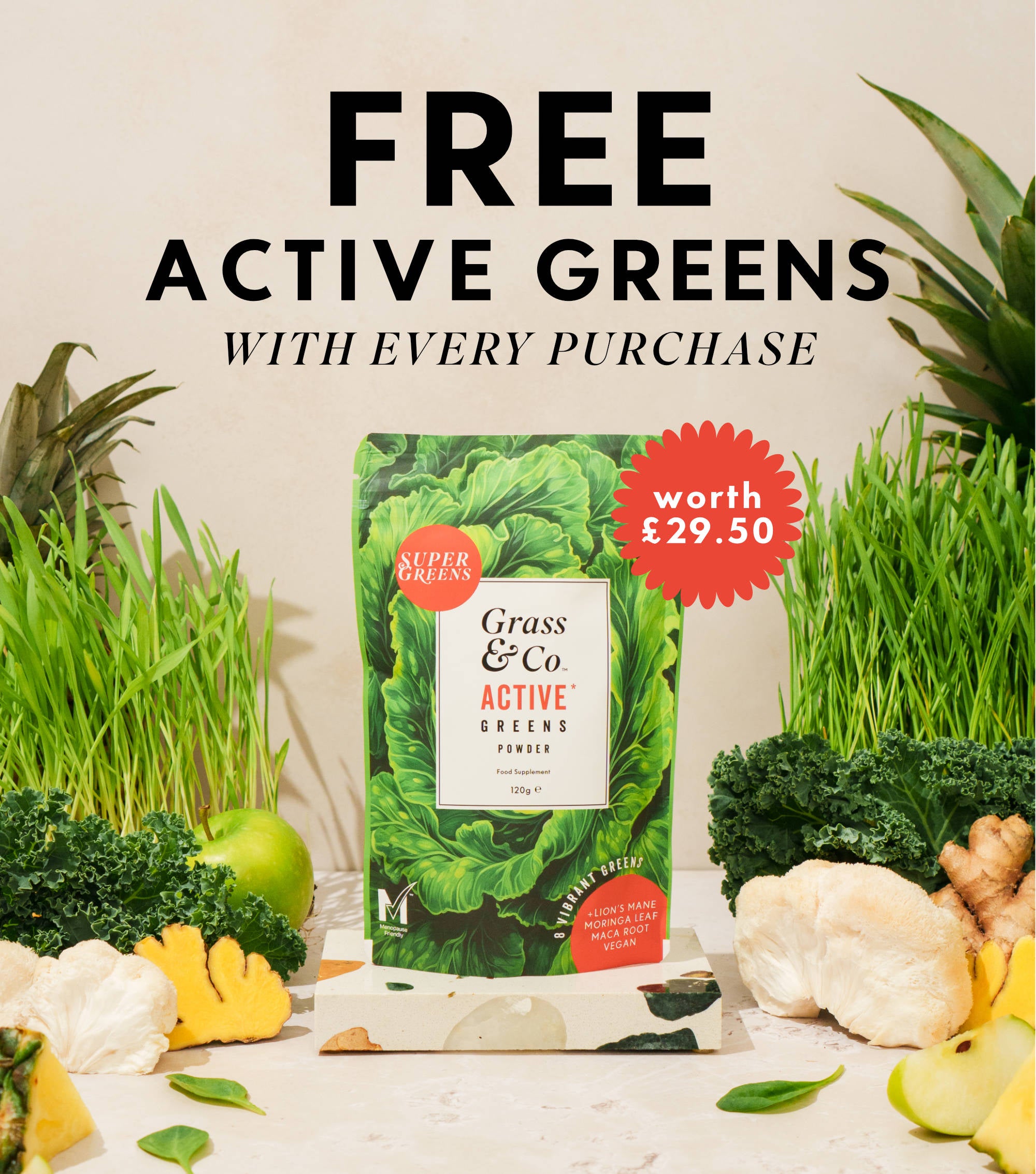 FREE ACTIVE GREENS (WORTH £29.50) WITH EVERY PURCHASE